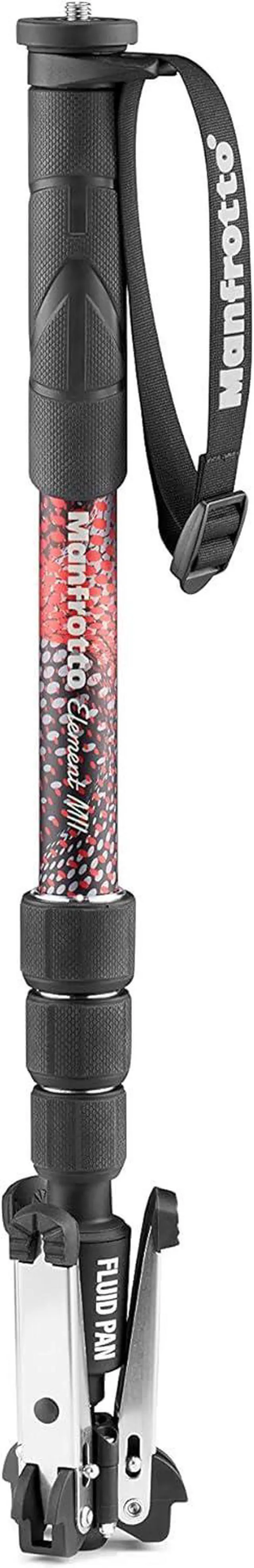 and documentaries: in short, all those dynamic situations where agility and precision really count. Compact, lightweight and brilliantly smooth, it combines sophisticated performance with simplicity of use. Its quick and easy to both fold down and pack away, and works perfectly for CSC and DSLR cameras. The Element MII Video Monopod incorporates high-performing, ergonomic twist locks. These make set-up and adjustment much easier and more comfortable, while also offering maximum grip, quick leg opening and extreme compactness. The Element MII Video Monopod also has an incredibly smooth panning action, thanks to the patented, lightweight fluid cartridge in the base. Leveraging the judder-free base sphere, tilt position can be reached on the most uneven surfaces, allowing users to take advantage of pan fluidity in all sorts of conditions. The Element MII Video Monopods lightweight aluminium body makes it easy-to-carry, plus the durable aluminium design means it stays totally rigid when the sections are fully open; all the while being able to support loads up to 16Kg. Like all Manfrotto products, the Element MII Fluid Video Monopod is made to the highest quality and design standards.