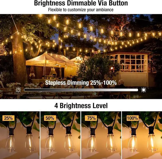 Energy Saving & Super ConvenientExperience energy and cost savings with 0.6W bulbs, lasting over 30, 000 hours and using 95% less electricity than incandescent lights. Enjoy significant reductions on your bills. Quick installation of beautiful backyard string lights saves you time and effort