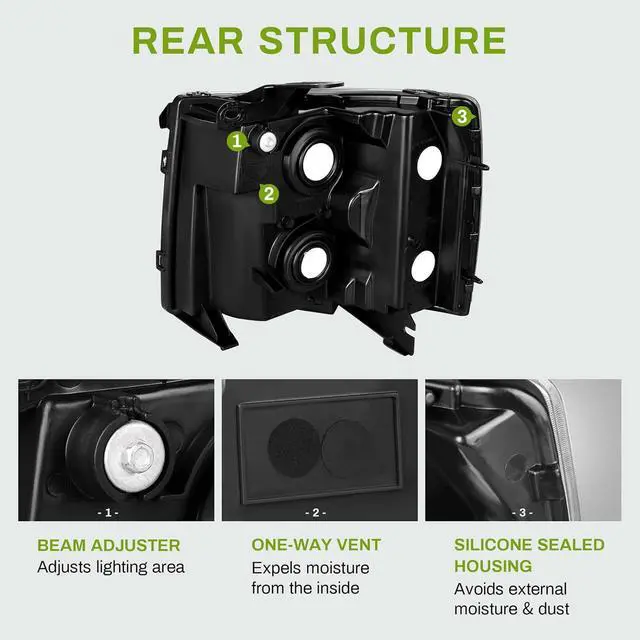 Full sealed by silicone to prevent harmful external moisture & road dust from being trapped inside the headlights.