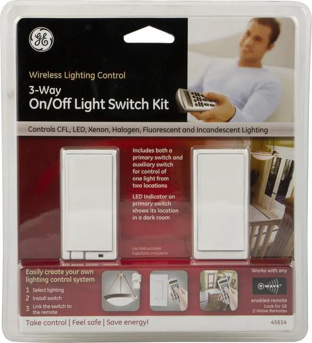 Easily replace any three-way switch configuration with the GE Z-Wave three-way ON/OFF kit to turn lighting on or off with your mobile device or computer using any Z-Wave certified gateway
