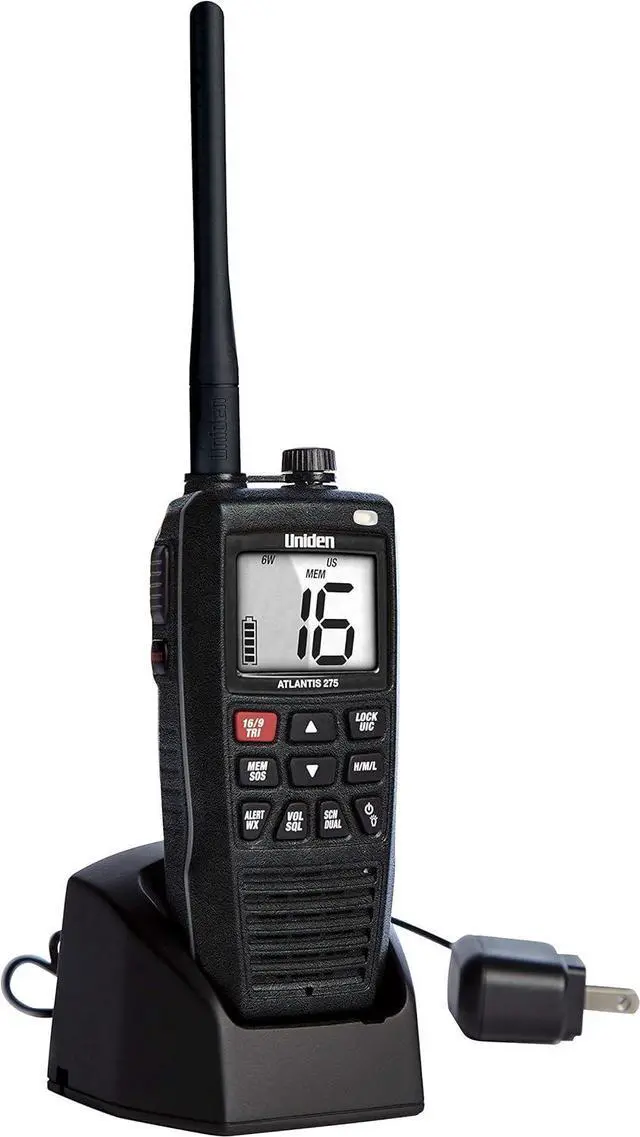 The Uniden Atlantis 275 continues Uniden tradition of providing Tough and reliable handheld radios. It features all NOAA weather channels, As well as all USA, International and Canadian marine channels. It also meets submersible waterproof standards. The Atlantis's brilliant backlit LCD display makes it easy to use, day or night for The power to go anywhere.