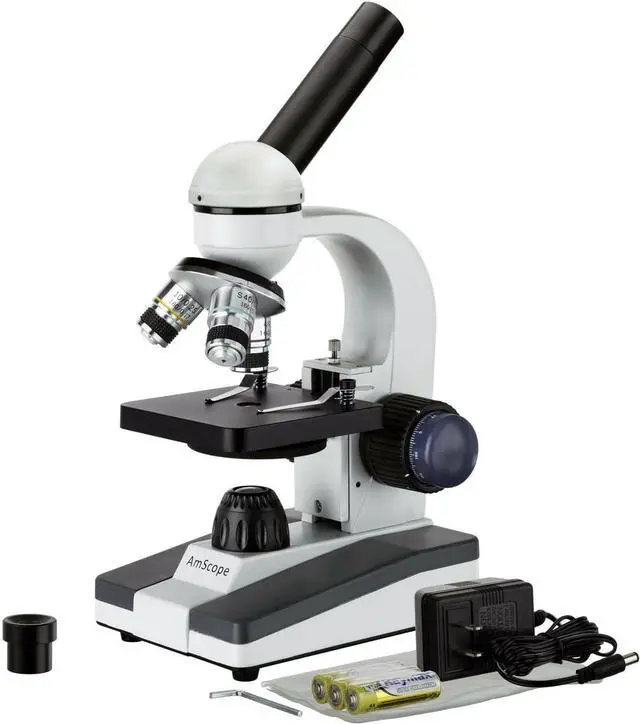 The M150 Series Portable LED Monocular Student Compound Microscope is a high-performance compound microscope designed to bring the microscopic world into stunning clarity. Ideal for students and microscopy enthusiasts, this portable microscope is a gateway to discovery, whether in a classroom, at home, or in the field. Its robust metal construction and precision lenses collaborate to provide a range of magnifications from 40X to 1000X, allowing for detailed examination of microscopic subjects.