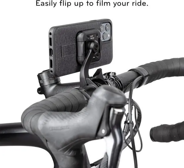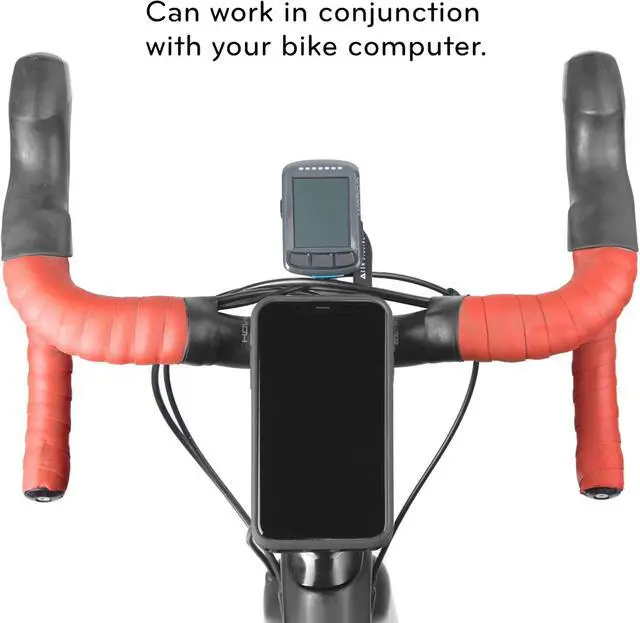 Positions phone in front of your bars, in optimal viewing angle and away from your knees