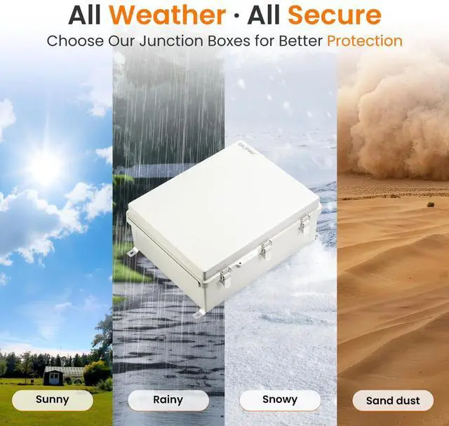 Versatile Solutions: Our waterproof electrical box is engineered to be suitable for wide applications, such as lighting systems, routers, POE switches, CCTV cameras, Starlink devices, solar panels, irrigation systems, ham radios, LEDs, power supplies, pool controls, Wi-Fi devices, and more. This versatility broadens your opportunities and gives you more flexibility