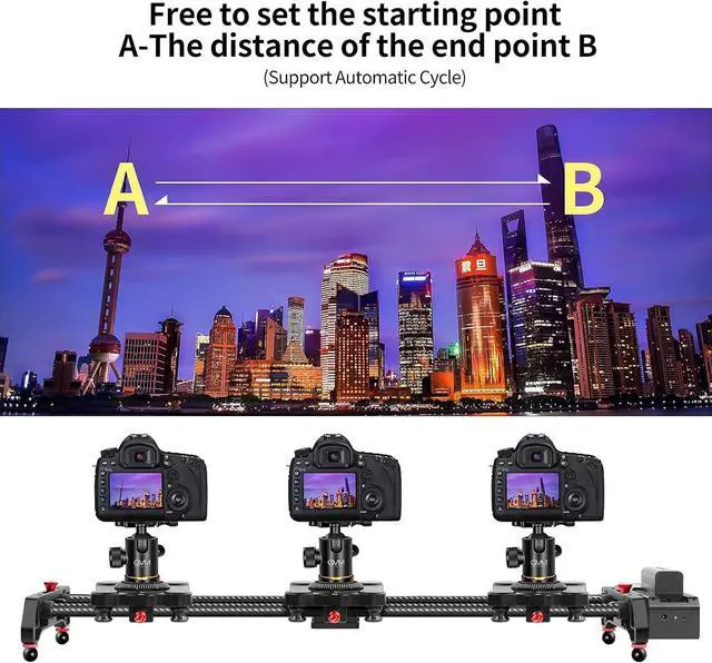 Wireless APP Control- Instead of using a hardwired controller, the 31" Wireless Carbon Fiber Motorized Camera Slider from GVM lets you manage and control the motorized motion via an iOS/Android app from your smartphone or tablet.