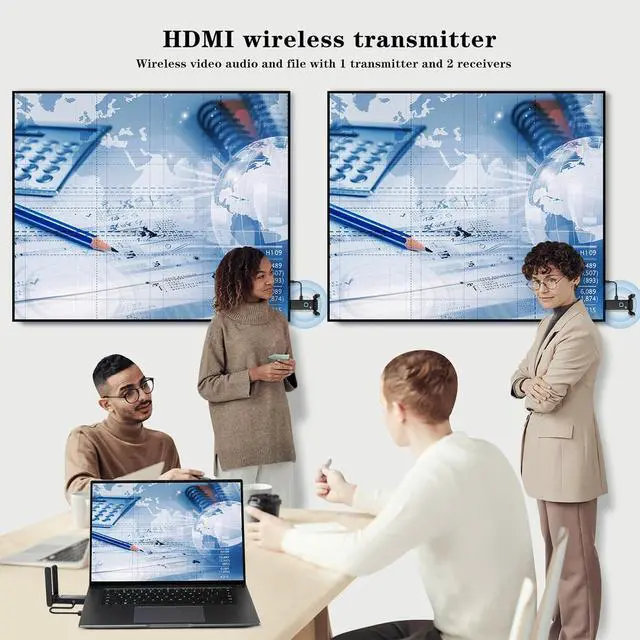 Play: HDMI sender and receiver wireless equipped with a dual-antenna system that enhances signal penetration, it achieves a transmission distance of up to 165 feet/50 meters, catering to diverse needs in homes and offices. Flexibly arrange your home theater or conference room, freeing yourself from cable clutter, reducing costs and hassles, and eliminating worries about tangled wires, damage, or loose connections.
