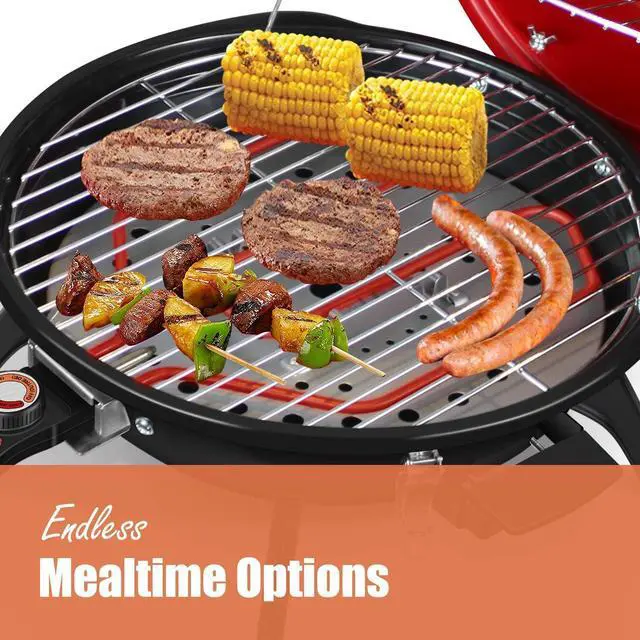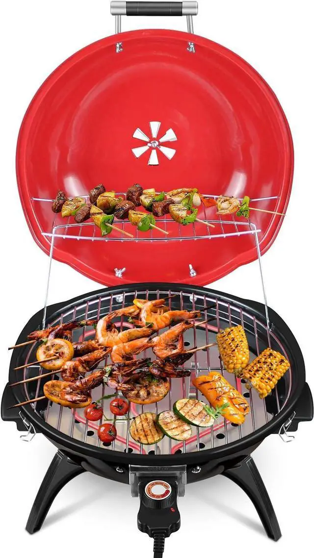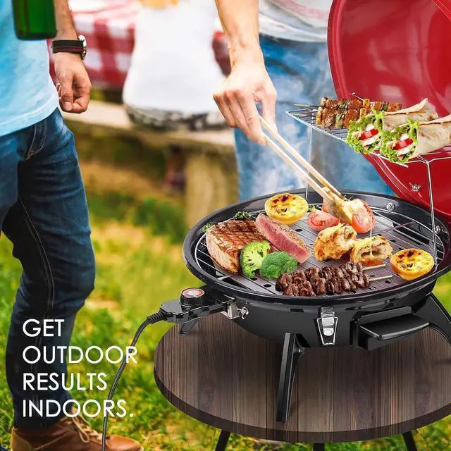 - [FAST-HEATING&ADJUSTABLE TEMPERATURE CONTROL] - Portable electric outdoor grills convenient design of the interlocking hood and bowl allow for rapid cycle heating, which allows to heat the meat. The adjustable temperature controls make it easy to find the right amount of heat for whatever you create, Venting system can effectively dissipate heat and keep the steak tender and juicy.