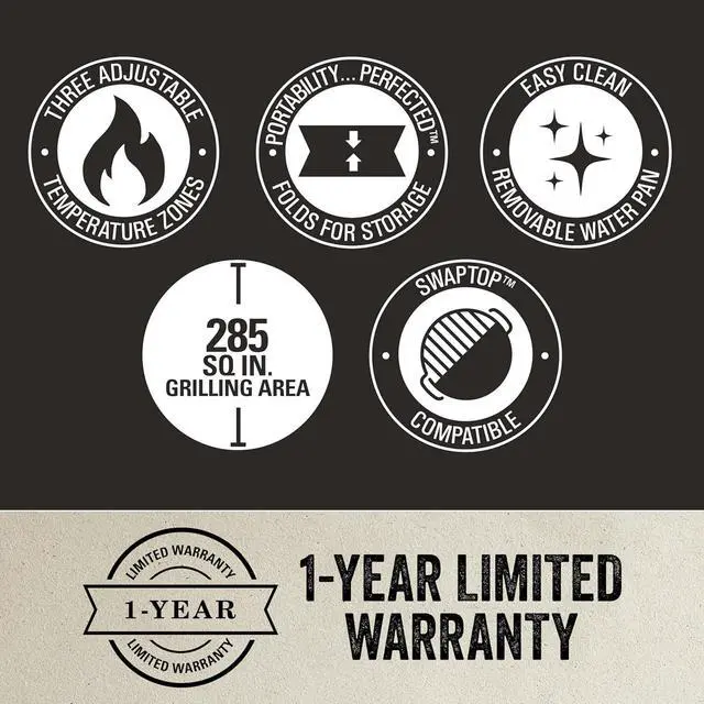 - Large Grilling Area: A spacious 285 sq. in. cooks a variety of foods at once