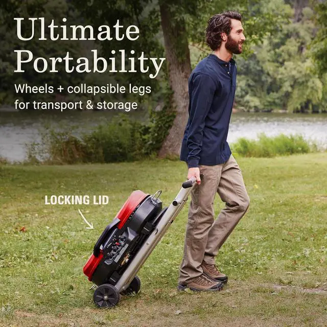 Enjoy your backyard cookout, beach outing or camping grilling with the Coleman RoadTrip 285 Standup Propane Gas Grill. Its quick-fold legs and 2 wheels offer hassle-free setup and takedown, making it a breeze to transport. Expect matchless lighting with the push-button ignition system, and enjoy more precise temperature control with improved technology on the 3 adjustable burners. Whether you're at a tailgate, festival, or just enjoying the great outdoors, Coleman's got your grilling needs covered.