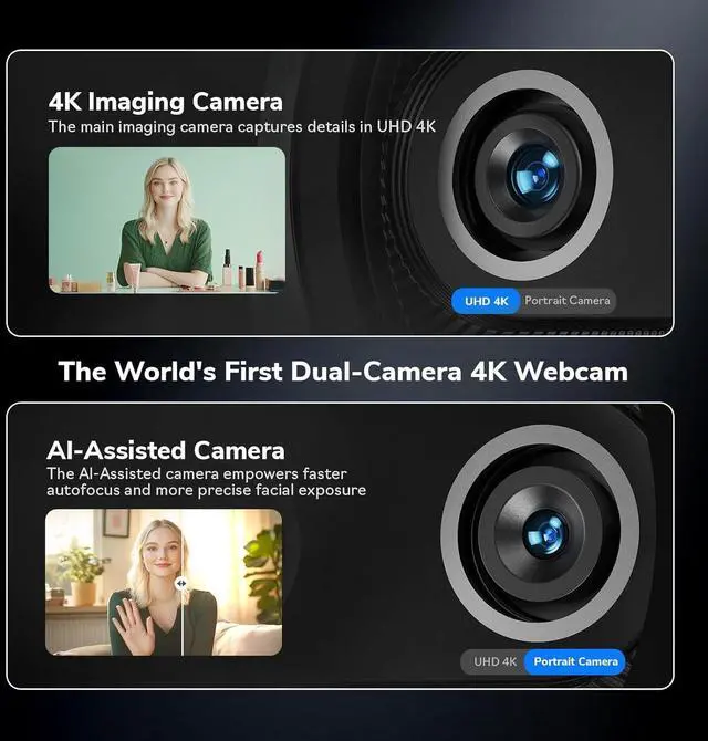 - Visual Excellence, Revolutionary Dual-Camera Innovation - EMEET Piko, the world's 1st Dual-Camera AI-Powered 4K Webcam for PC, elevates your 4K experience. Its 4K main camera with a 1/ 2.8 '' sensor delivers ultra-clear visuals, while the AI-Assisted camera ensures rapid autofocus and precise face lighting. Piko excels in low-light conditions with superior face and background recognition, outperforming competitors and making it the ideal choice for content creators, professionals, and educators.