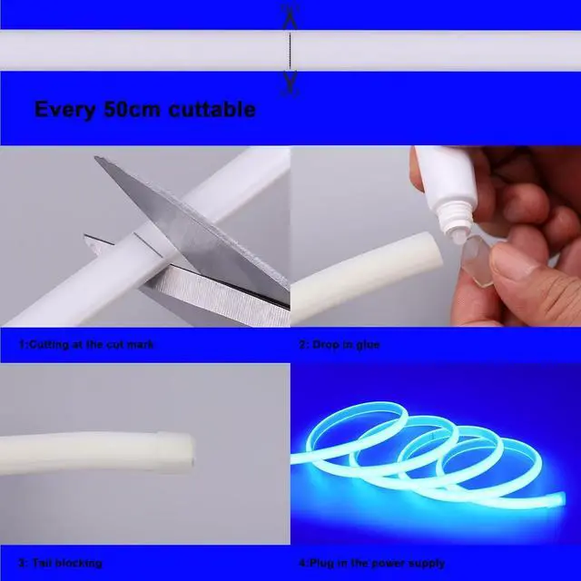 - Flexible and CuttableFlexible cob led rope lights can be used on certain curved and irregular surfaces. It is not limited to use on vertical walls. Cuttable every 50cm, after cutting, please insulate and waterproof to avoid electric shock. Use BENLUN plugs to connect after cutting, do not use any connectors.