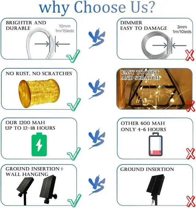 - Solar Power: Solar rope lights decorate your garden during the day, convert sunlight into electricity, and when night falls, solar decorative lights will automatically light up to illuminate your Garden, Patio, Pathway, Yard.