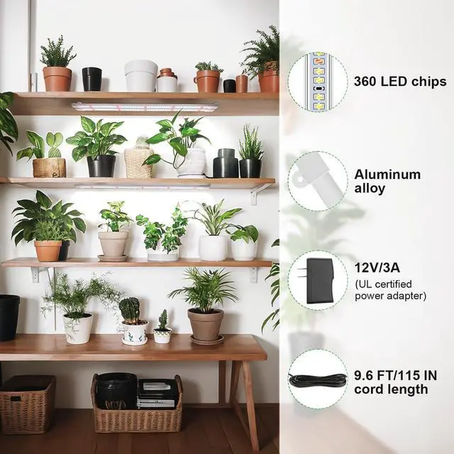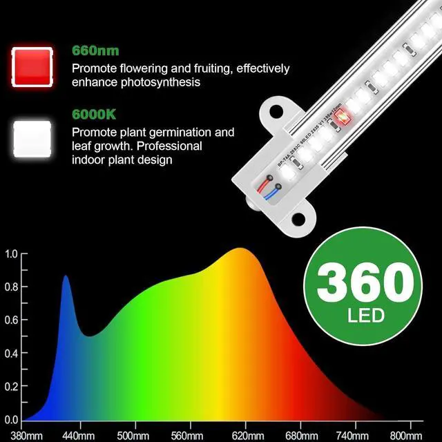 UL Certified Adapters: This Grow Light have 60 beads per strip, up to 360 LED in total. And paired with 12V 3A adapter, this plant light strip is brighter and more stable. Emit full spectrum with wavelengths from 380nm to 800nm, including red, blue, and other colors needed for optimal plant growth.