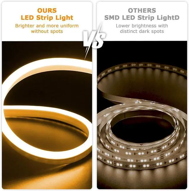 - Super BrightThe led strip lights adopts side-emitting design, the light is soft, and it is brighter than ordinary led strip lights. With a projection range of 120 degrees, no light spot can be seen even at close range. led strip lights is perfect for bedroom, living rooms, kitchens, closets, ceilings, stairs, bars, etc., or as mood lights for parties.