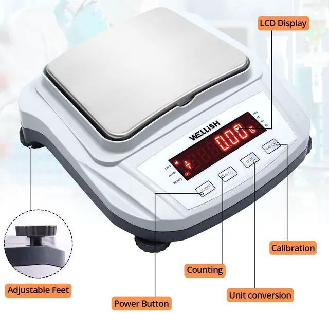 - High precisionThe lab scale adopts a built-in high-sensitivity sensor and adjustable feet which can easily reach the accuracy of 0.01 g. (Kindly note the calibration weight not include)