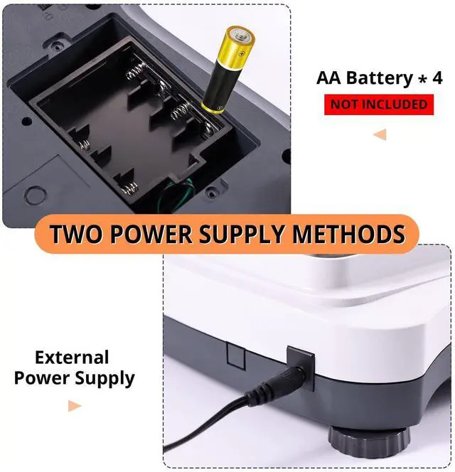 - Multi-functionTare and counting function. 4 units weighing unit can be selected (g, ct, oz, lb). 2 power supply modes: power cord or battery(Battery not included because of shipping policy, Note: for battery power, you also need to turn on the battery control switch next to the battery case)
