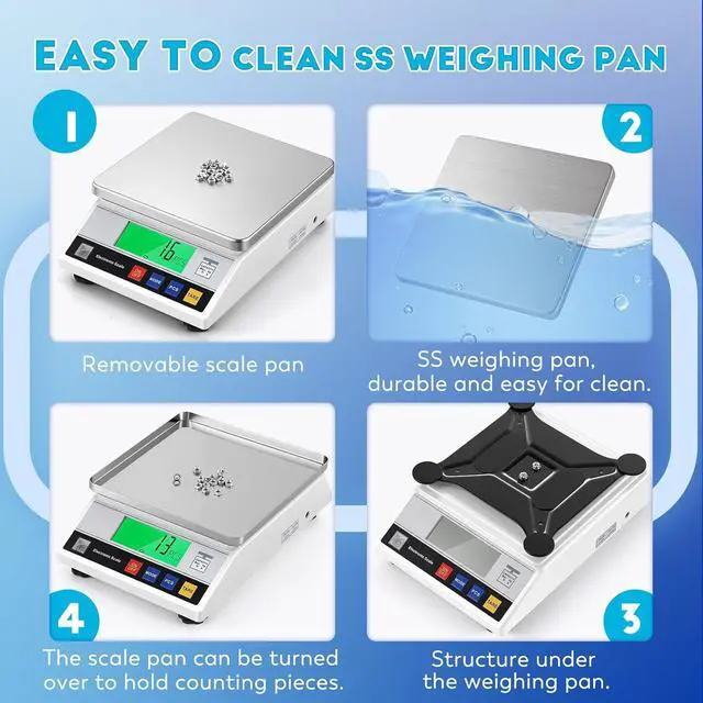 - CE Certification - The industrial counting scale is made of ABS body and 180 x 180mm/ 7 x 7 inch stainless steel weighing pan, which is durable, sturdy and reliable with CE certification.