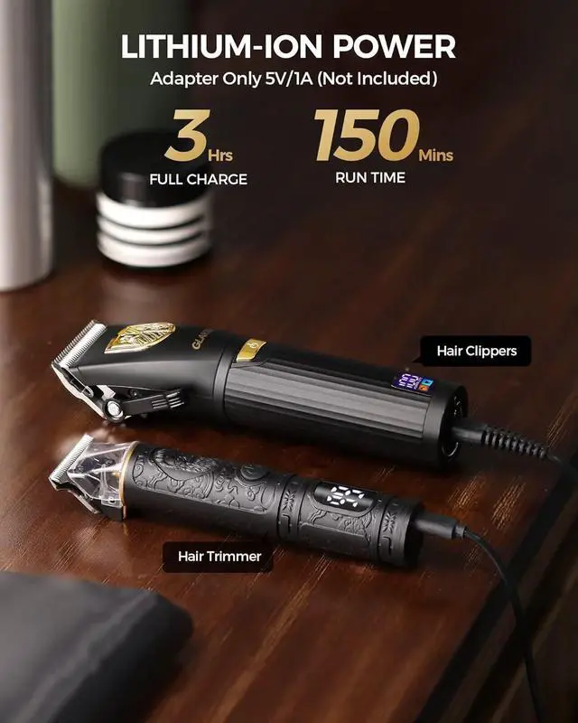 - ONLY 5V/1A ADAPTER: Use a 5V/1A adapter with an input voltage not exceeding 5V 1A (not included) for charging. Exceeding 5V/1A may trigger Over Voltage Protection, resulting in the hair clippers being unable to charge