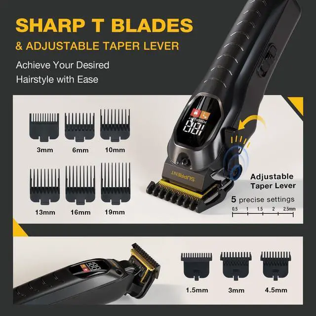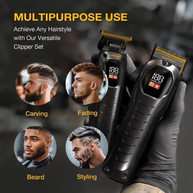 - Long-Lasting Power & LED Display: The SUPRENT clipper delivers up to a long 3-hour cordless runtime on a single charge, giving you ample time to complete your haircutting needs without interruptions. Plus, the convenient Type-C cable ensures fast and easy charging. The built-in digital display allows you to quickly check power reminders, lubrication reminders, and charging status.