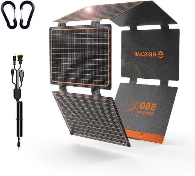 - 6 folds and 2.6 lbs 1.2KG ) low weight with junction box and accessories. The unfold size is 54.8 x 12 x 1 inch, the fold size is 9.8 x 12 x 1 inch which is similar size with laptop and makes it easy to unfold to collect power and folded with handles to carry away or put in your backpack. Although it is not very heavy, but is a little burden for hiking, more suitable for camping and driving trips or home emergency power.