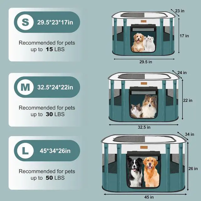 - 3 SIZES FOR MOST PETSSmall- 29.5 x23x17in; Medium- 32.5 x24x22in; Large-45x34x26in. Please allow 1-2in error. Suitable for cats, dogs, puppies, kittens, rabbits, chickens, ferrets, hamsters, guinea pigs and pregnant pets, etc. Please measure your pet's size and choose the right size before you b