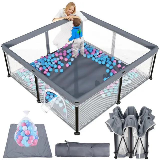 - FOLDABLE BABY PLAYPENFoldable baby play pen features an innovative folding design that makes it quick and easy to assemble and disassemble, completes on its own in seconds and can be easily bagged to save time and space.
