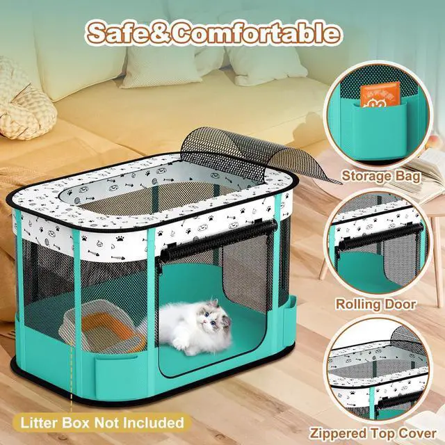 REINFORCED STABILITY: Engineered with 8 reinforced support poles that create exceptional stability, this cat playpen maintains its shape even during energetic play sessions, ensuring long-lasting use for both kittens and large cats, allowing pets to enter/exit freely without collapsing the tent.