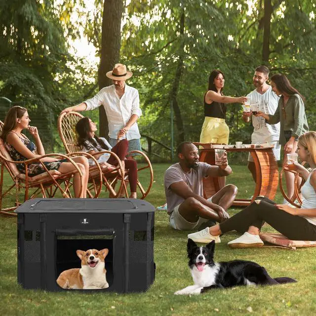 - Spacious & ComfortDog cage consists of 4 mesh side panels and a half mesh top, well ventilated; The playpen tent promotes comfort and security, providing dogs and cats a safe enclosed space for lounge and play. The pet playpen is also a ideal present as Christmas gifts for dog cat lovers