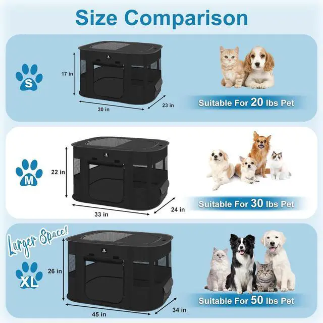 - Suitable for various petsSuitable for cats, dogs, rabbits, chickens, ferrets, hamsters, pregnant pets, etc. Small -30 x 23 x 17 inches, suitable for small pets under 20 pounds; Medium -33 x 24 x 22 inches, suitable for pets up to 30 pounds; Large 45 x 34 x 26 inches, suitable for pets under 50 pounds. Please measure your pet before purchasing to choose the right size