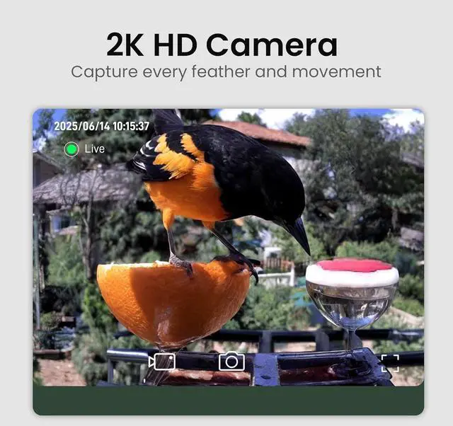 - Live Birdwatching, Anytime, Anywhere: Watch birds visit your bird feeder with camera in real-time with 1080P HD video streaming straight to your phone. Whether youre at home or away, never miss a moment as birds stop by, bringing nature closer than ever. You can even use it as an extra security camera with auto depth focus, blurring backyards for privacy.