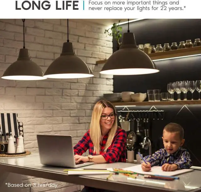 - Continuous Ligh - Built with an astounding 25, 000 hours of lifetime which means no replacement will be needed for the next 22 years. Each e26 LED bulb lasts 10x longer than traditional 100W a19 bulb