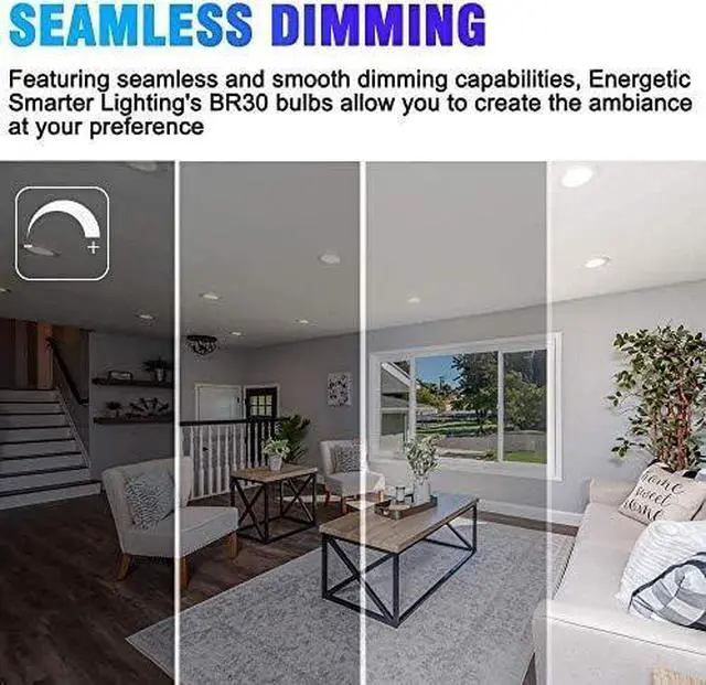 Energetic Smarter Lighting BR30 LED flood light bulbs provide 650 lumens of 3000K warm white light, equivalent to 65-Watt incandescent bulbs with 86% less energy use. These bulbs fit standard E26 medium screw base fixtures that they can be installed easily - ideal indoor or outdoor flood lights for recessed cans. Smooth dimming capability offers seamless, flicker-free, silent dimming that works with a variety of dimmers on the market. With a life of 15, 000 hours, the bulbs will last over 13 years (based on 3 hours of use each day)