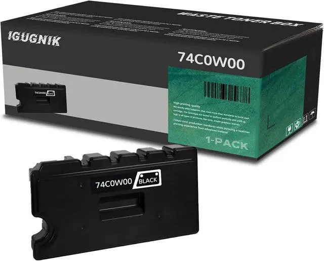 Insurance: IGUGNIK replacements for Lexmark 74C0W00 black Waste Toner Box are made in an ISO 9001, ISO 14001 certified facility to ensure they maintain the highest levels of quality and durability. falseSafe and reliable: Our Waste Toner Box use certified materials and manufacturing processes to ensure a safe and reliable printing experience, while also protecting your printer. falseWhat you will get: