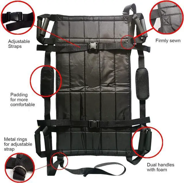 - Two ways to lift people by tying the straps to different metal rings. Simple and easy to use for transferring patient from the wheelchair to the bed, car, or another chair, aiding turning over body or as seat pad for wheelchair