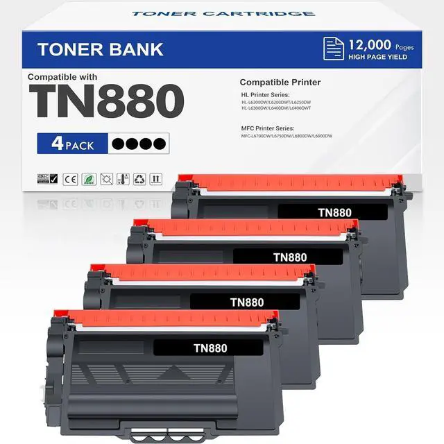 Included: 4 Pack TN880 Super High Yield Toner TN-880 TN 880 for HL L6200DW L6200DWT L6250DW L6300DW L6400DW L6400DWT MFC L6700DW L6750DW L6800DW L6900DW Printer