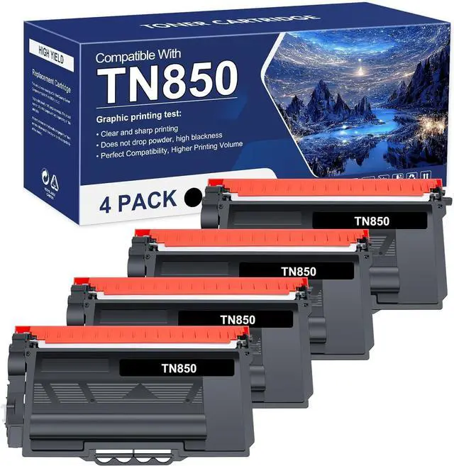Included: 4 Pack Black TN850 Compatible Toner Cartridge Replacement for Brother TN 850 820 TN850 TN820 TN-850 TN-820 TN-820/TN-850 820/850 High Yield Toner