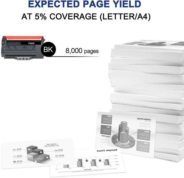 - Page Yield: 8, 000 Pages per TN850 High Yield Toner Cartridge (Letter/A4, at 5% Coverage)