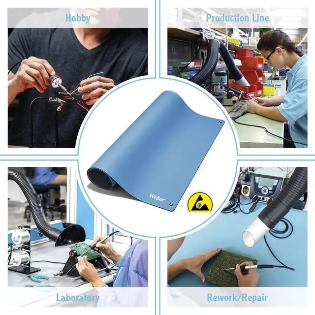 and comfortablefalseTested: RoHS-compliantfalseThe ESD soldering mats are heat- and solder-resistant and have an appealing antireflective surface. The mats feature two 10 mm press studs and rounded corners. Static control is paramount for electronic assembly and production. ESD mats reduce the risk of electrical discharge to the component, and protect it from damage and expensive rework.