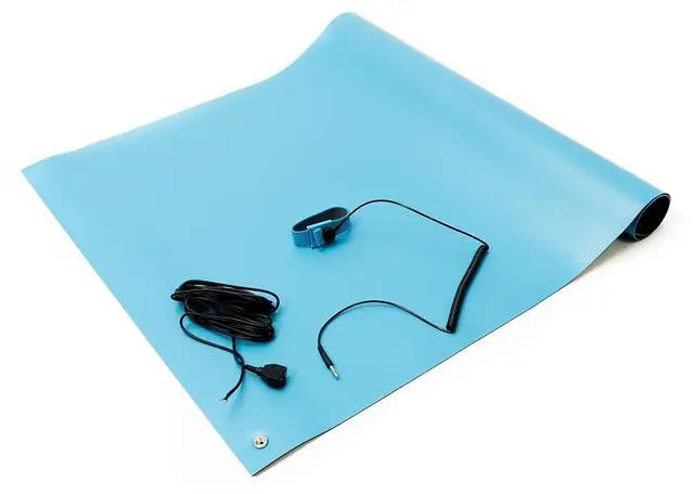 - STRONG WORKSTATION PAD: Designed for electronic assembly, this grounding mat offers excellent resistance to oil, grease, most common solvents, hot solders, and soldering irons; comes with a wrist strap and 15-foot ground cord