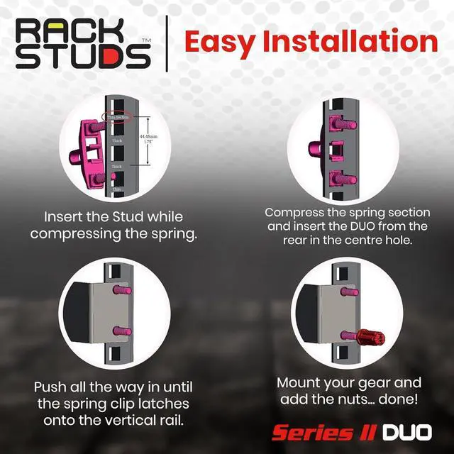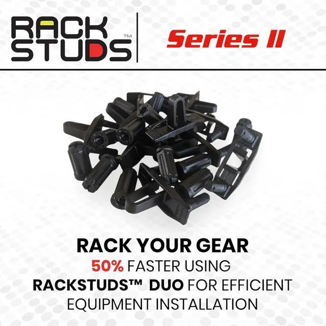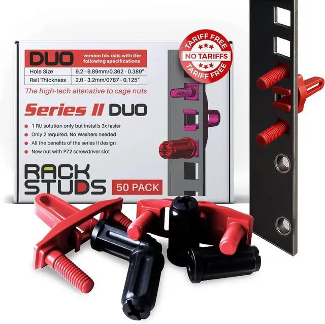 - RELIED ON BY DATA CENTERS WORLDWIDE: Rackstuds Series II DUO is trusted by data centers globally for efficient, single-person installations. Whether you're handling 1RU server racks or other hardware, the DUO makes mounting faster, easier, and more reliable than standard rack screws and cage nuts.