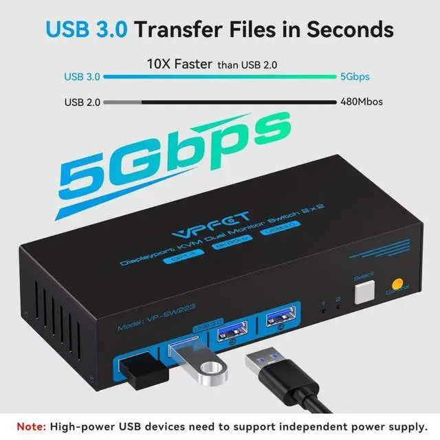 In addition to the mouse and keyboard, the additional USB port allows the two systems to share printers, USB flash drives and other devices. USB 3.0 interface transfer speed up to 5Gbps, saving your data transfer time, so that the USB device to the source of the connection is more smooth, backward compatible with USB 2.0.
