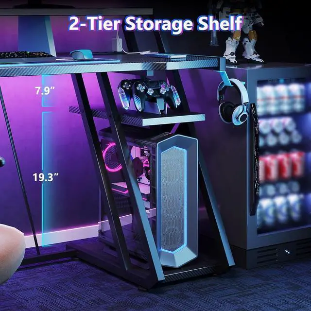 - 2-layer Storage Shelf Design: The 2-layer shelves of the MOTPK pc desk provide you extra storage space for gaming devices or other items. The height of the bottom shelf is 19.2", enough to put a PC tower.