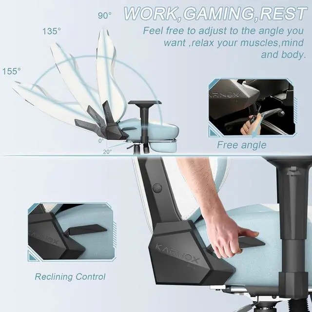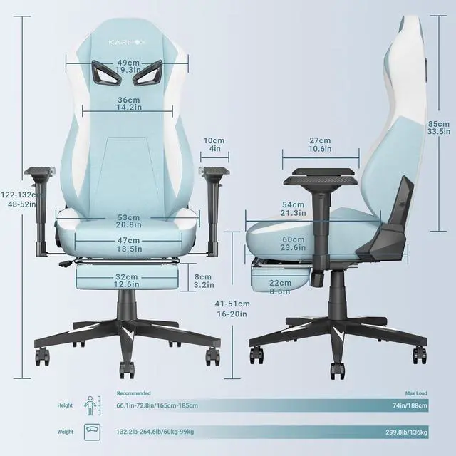 Gaming Chair]: Karnox Gaming Chair is made of high-quality fabric for racing chairs, which is easy to clean, comfortable and won't peel easily, and the cushion is made of integrated high-density foam(the 53kg/m³ integrally foam, which is much higher than the standard of 30kg/m³), it is very suitable for sedentary and won't collapse for 10 years, so that you can release the pressure from the tired state, relieve fatigue, enjoy games, work or life.