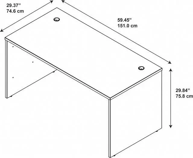 - PRACTICAL FEATURES: The pc desk's surface includes two wire management grommets to keep pesky cords and cables out of the way while you work. The shell desk design provides plenty of leg room while a finished back panel looks great facing any direction.