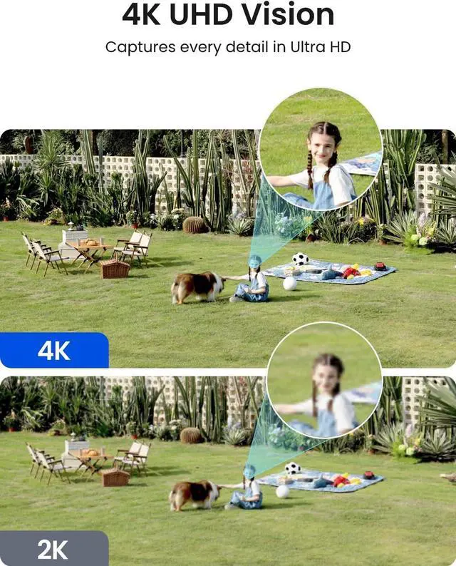 - DUAL-LENS 180° VIEW: Enjoy a 180° blindspot-free view with dual lenses stitching into a seamless, ultra-wide 4K perspective for complete coverage and clearer security.
