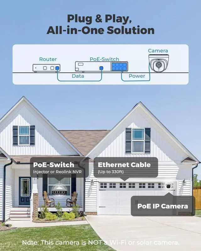 PoE Installation: This PoE camera uses a single Ethernet cable to transmit both data and power. Simplified wiring means easier and cleaner installation.