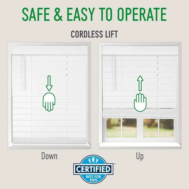- Cordless blind for indoor windows: An innovative cordless lift enables raising or lowering your horizontal window blind to your desired height. The wan