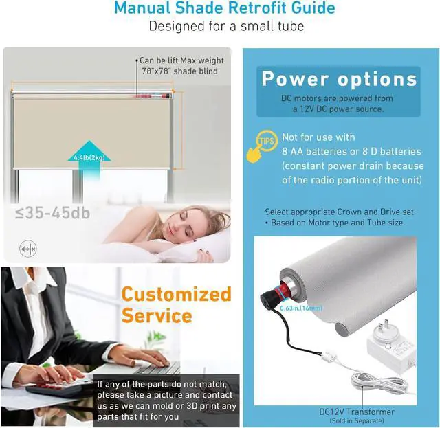 and drive fittings upgrade your existing normal blinds (Tube Size OD 1in. /25mm), automate existing blinds for Blinds, Shades of horizontal blinds, Motorized Roller Shades, mini blinds, Not compatible with aluminum blinds, vertical blinds