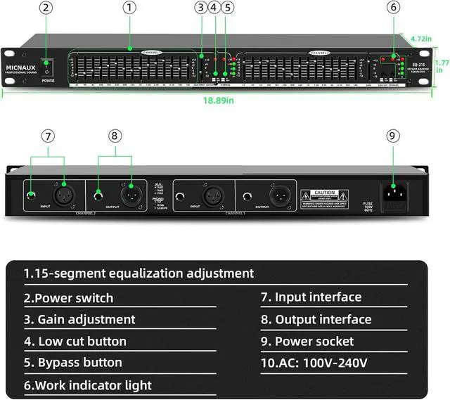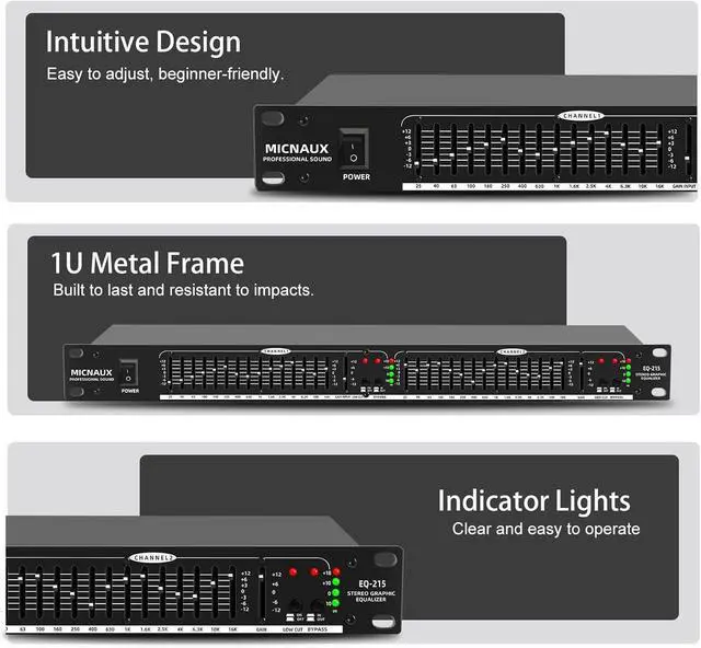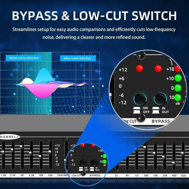 Comprehensive Input & Output Flexibility: Offering XLR balanced and 1/4" TRS unbalanced inputs and outputs, this equalizer supports a broad range of audio configurations, making it versatile for live performances, studio sessions, and audio installations.