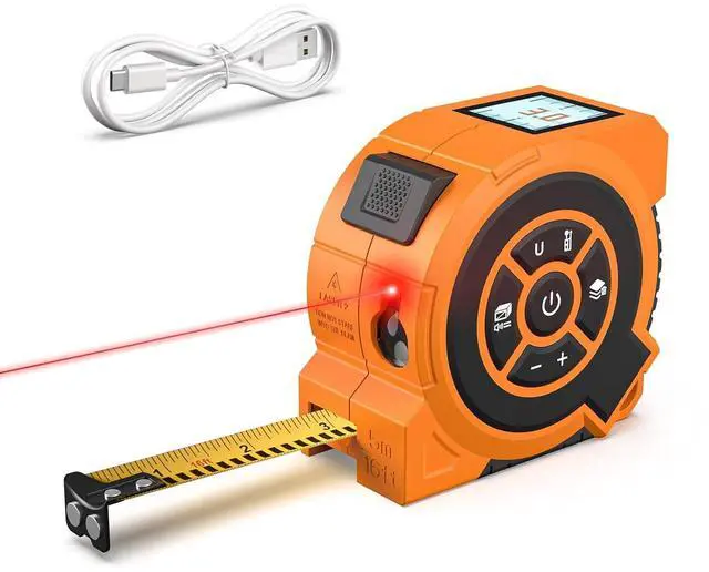Portable & Convenient Type-C Charging: This laser measuring tappe is powered by a rechargeable battery, providing up to 6000 uses per charge. The ergonomic grip, belt clip, and hand strap make it easy to carry aInd use independently, whether you're working at home, tacklingDIY projects, or on professional job sites. Its lightweight design ensures quick, hassle-free measurements wherever you need them